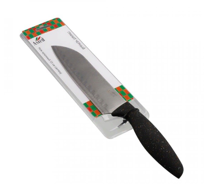 Нож кухонный 15см САНТОКУ с пласт ручкой ГРАНИТ ЧЕРНЫЙ/Катунь