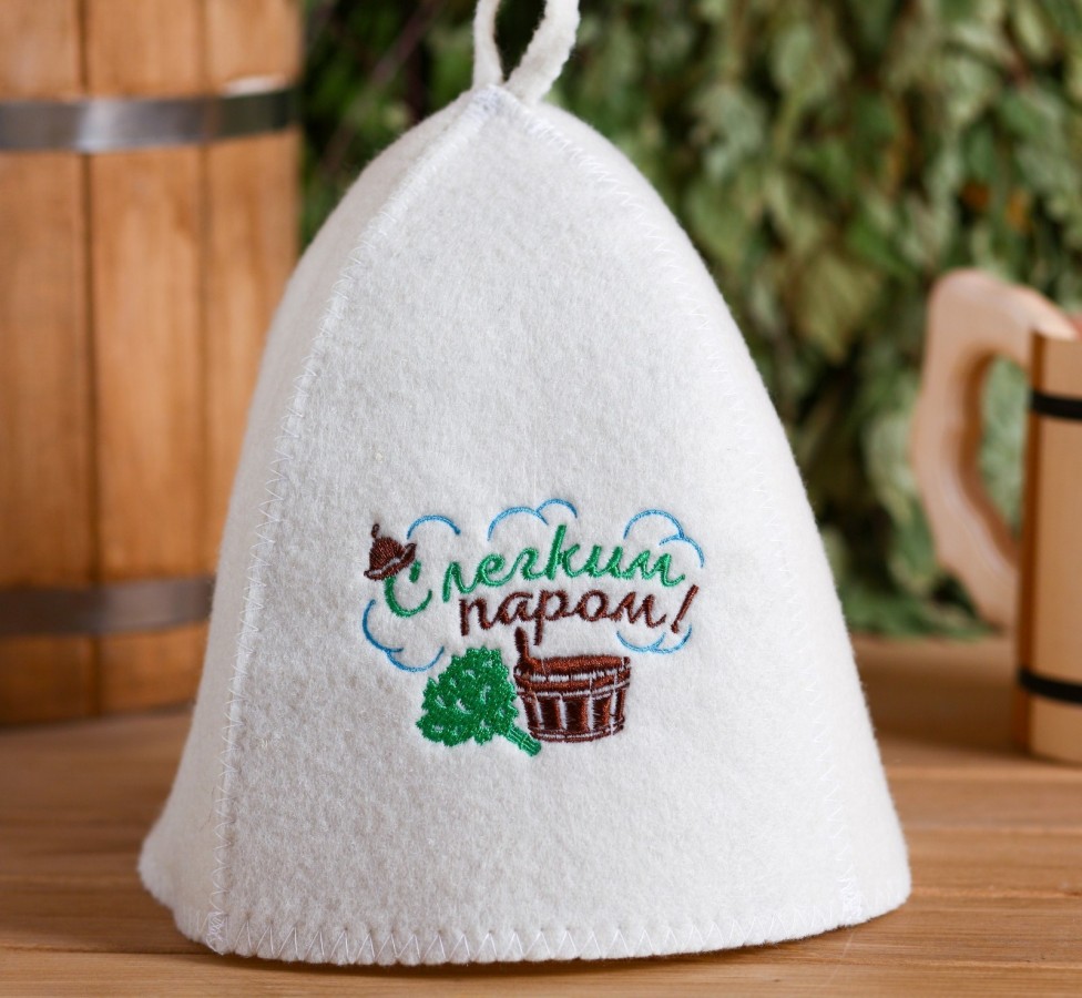 Шапка банная с вышивкой С ЛЕГКИМ ПАРОМ/Доляна