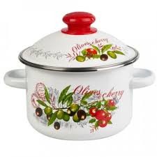 Кастрюля Эмаль 4л ОЛИВКИ И ЧЕРРИ белая цилиндрическая с ободком/3MD201M/ ф/Магнитогорск