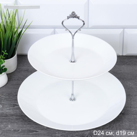 Фруктовница 2-х ярусная БЕЛАЯ Стеклокерамика/FLMLQP75/95 /ф/ГТ