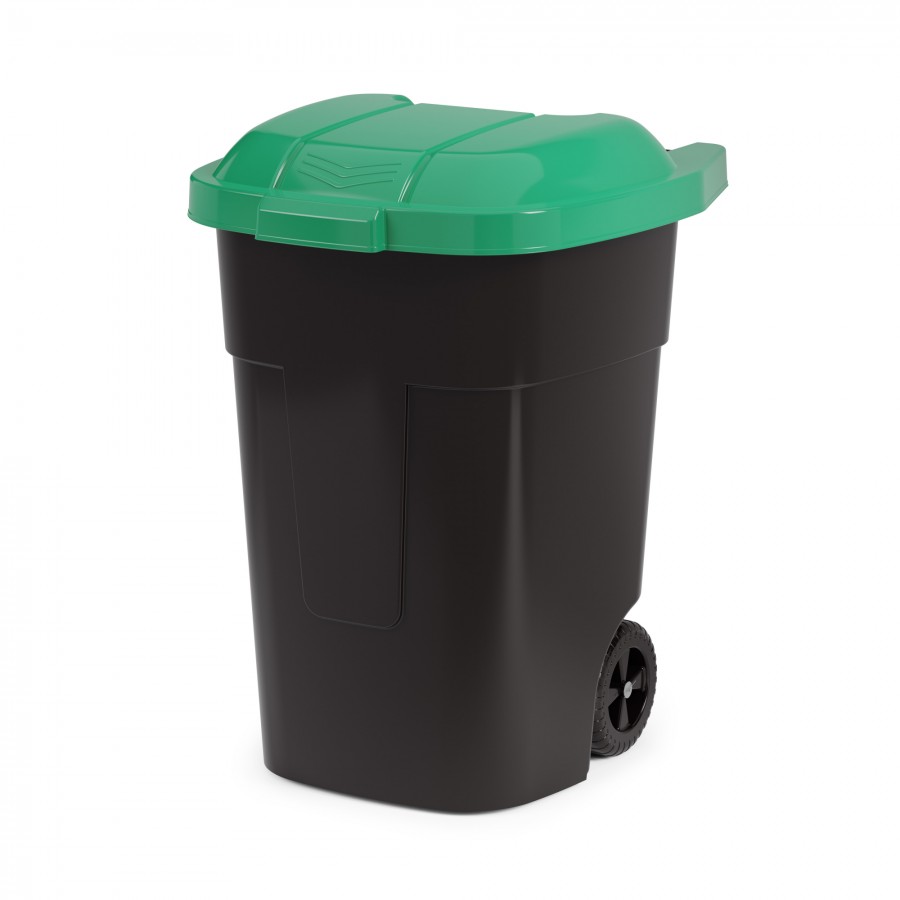 Бак для мусора 65л на колесах универсальный черно-зеленый / Б/ф