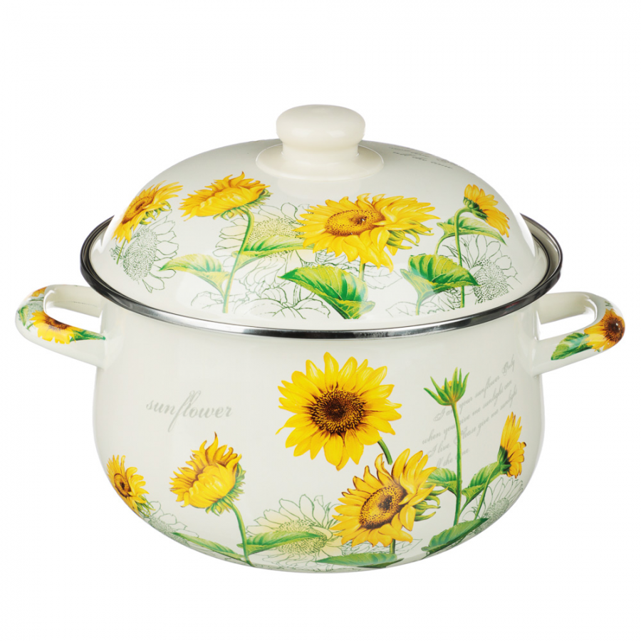 Кастрюля эмаль 3,6л ПОДСОЛНУХИ д22см Индукция/ф/VETTA