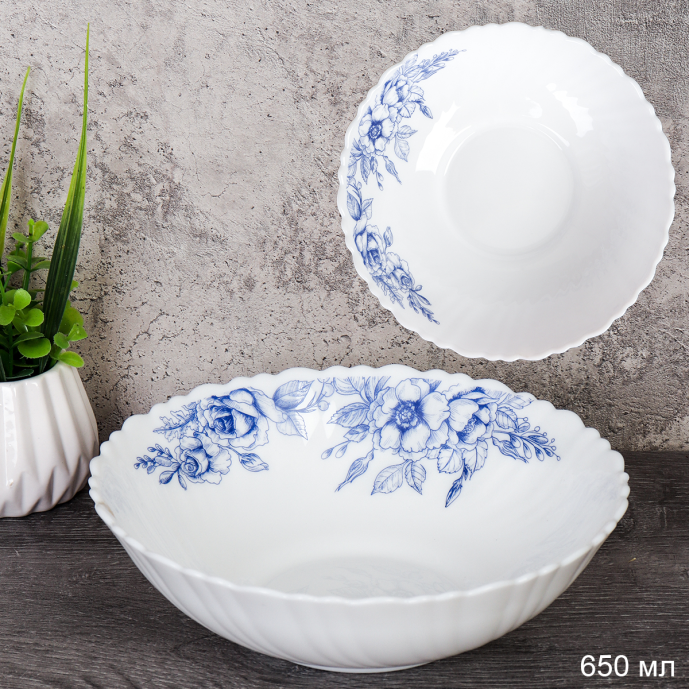 Тарелка глубокая 175мм 650мл ЦВЕТЫ КОБАЛЬТ/TW-70 (7367/ф/ГТ