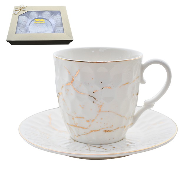 Чайный набор 12предметов Золотой мрамор 240мл фарфор/176-683/ КК/Ф
