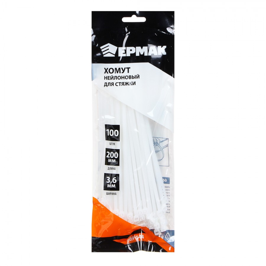 Хомут нейлоновый для стяжки 3.6*200мм белый 100шт/ф /VETTA