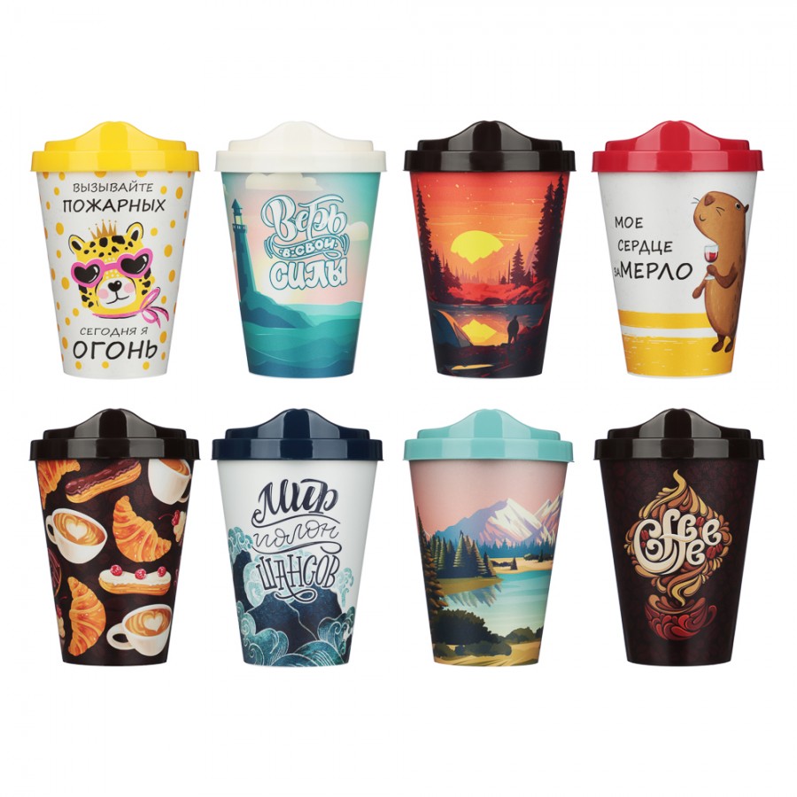 Стакан с крышкой 420мл Пластик Дизайн в ассор/Ф/Vetta