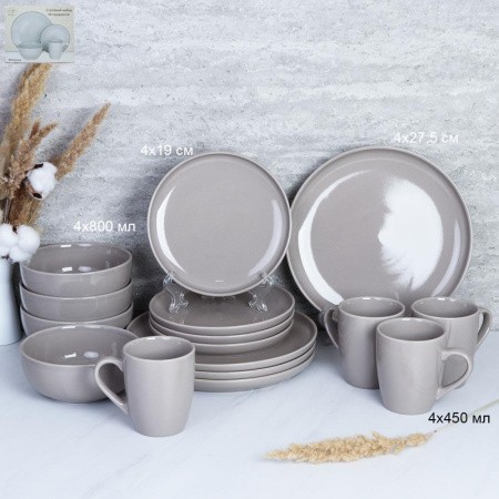 Столовый набор 16предметов Серый Глянец с кружками Керамика/YF8003/ф/ ГТ