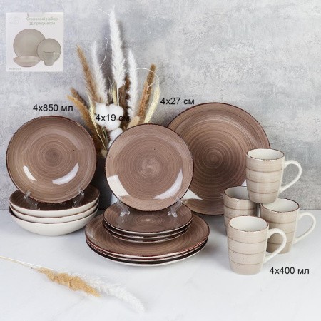Столовый набор 16предметов Какао крапинка Керамика/WHP24-0120B/ф/ГТ