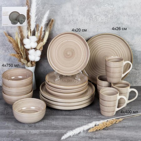 Столовый набор 16предметов Бежевый Крапинка Керамика/WHP24-0155G/ф/ГТ