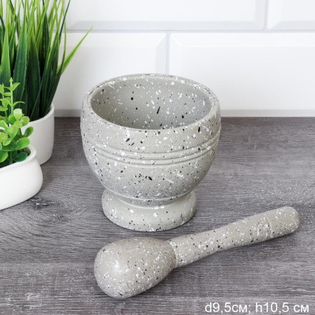 Ступка с пестиком для специй 9,5х10,5 см полистоун / A061B /ф/серая