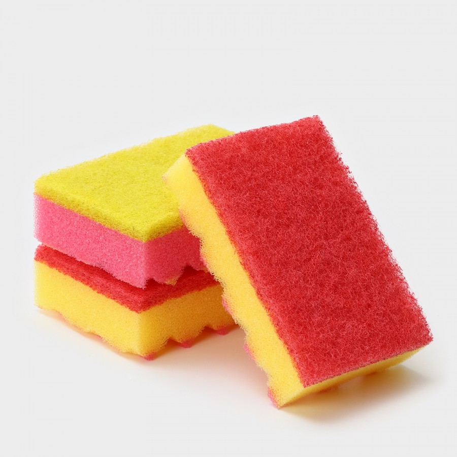 Губка для посуды 3шт с чистящим слоем PRIDE 100×65×30 мм МИКС/ф/Доляна