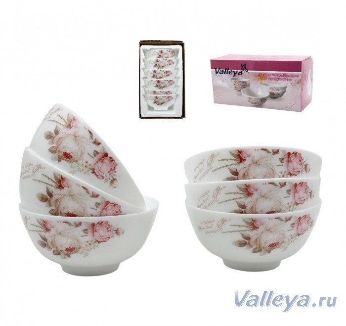 Набор салатников Ароматная роза 6пр Стеклокерамика 6916 /ВЛ