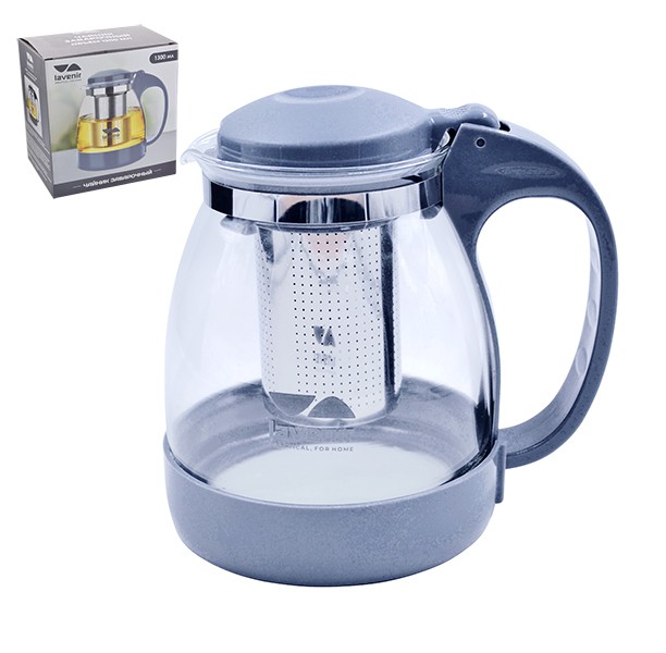 Чайник заварочный Lavenir 1300мл/стекло пластик нерж сталь/8024-1300GRY/ ф/КК