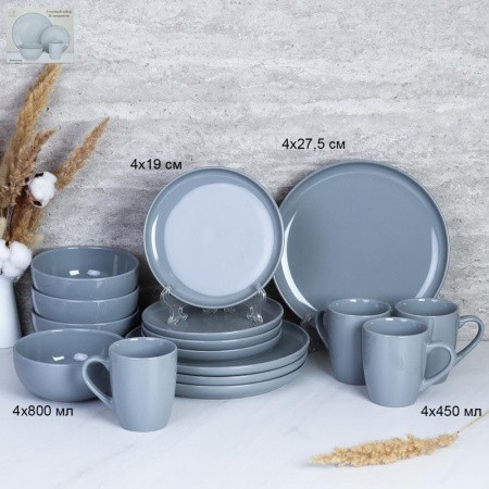 Столовый набор 16предметов Серый графитовый Керамика/YF8002/ф/ ГТ