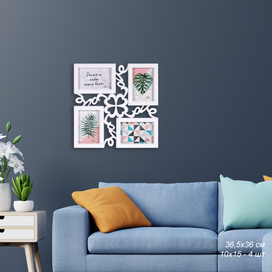 Фоторамка коллаж 4фото 36,5*36см Белая/103-1/ф/ГТ