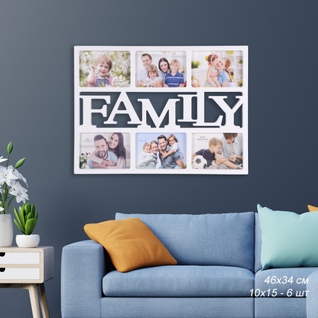 Фоторамка коллаж Семья 6фото 46*34см Белая/202/ф/ ГТ